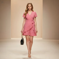 Aurélia V-Neck Wrap Dress – Elegant Short Sleeve Ruffle Dress by Zenova