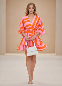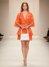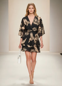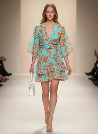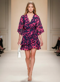 Designed for effortless party style, this V-neck wrap mini dress combines comfort with a flattering silhouette. The relaxed A-line shape and soft batwing sleeves create a flowy look that moves naturally with your body, while the lightweight polyester fabric keeps you cool during warm-weather events.